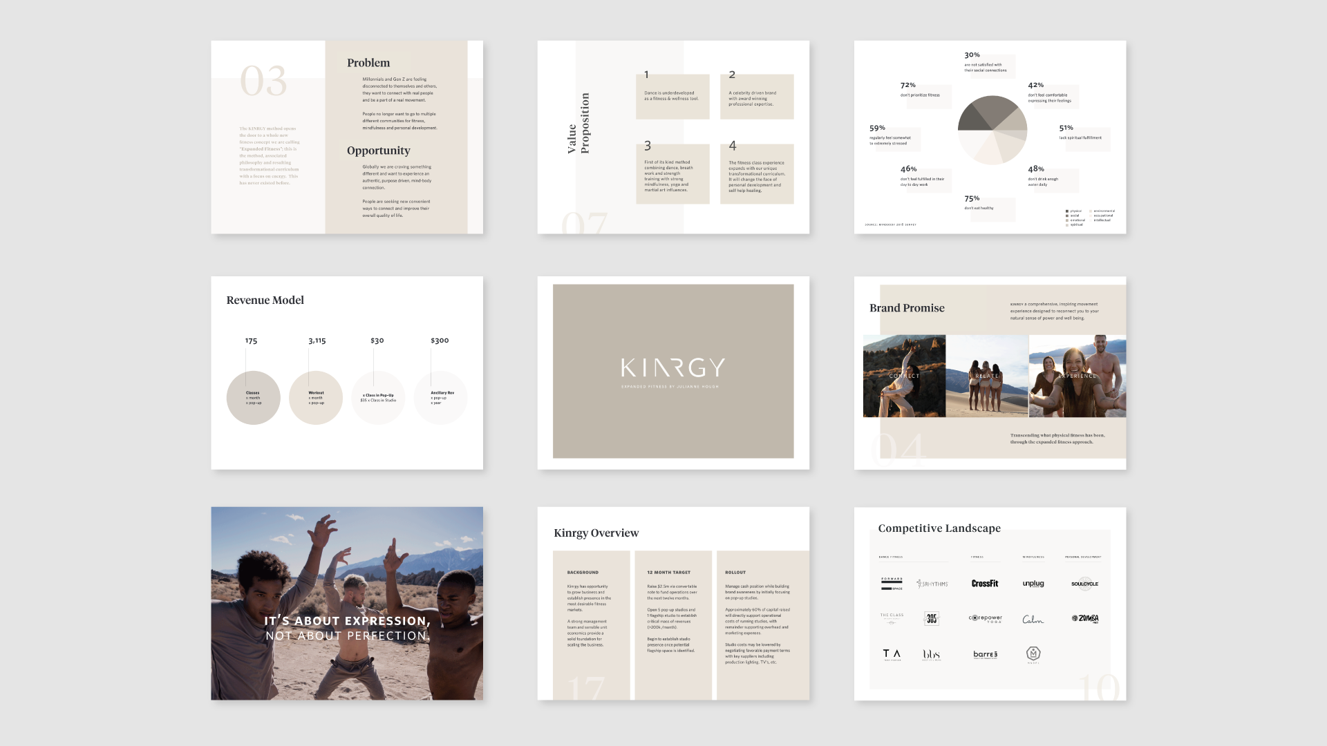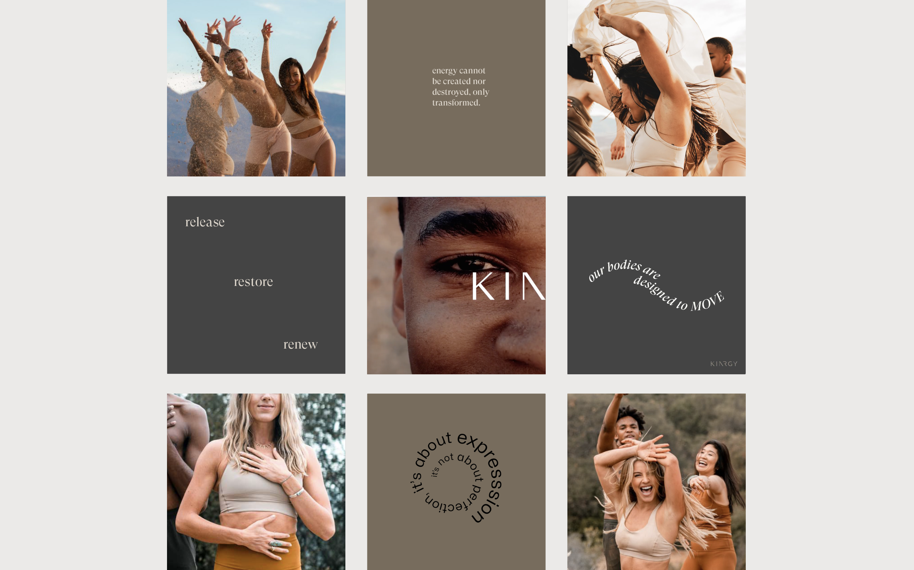 KINRGY Logo and visual identity design developed for KINRGY, a fitness and wellness program created by Julianne Hough.